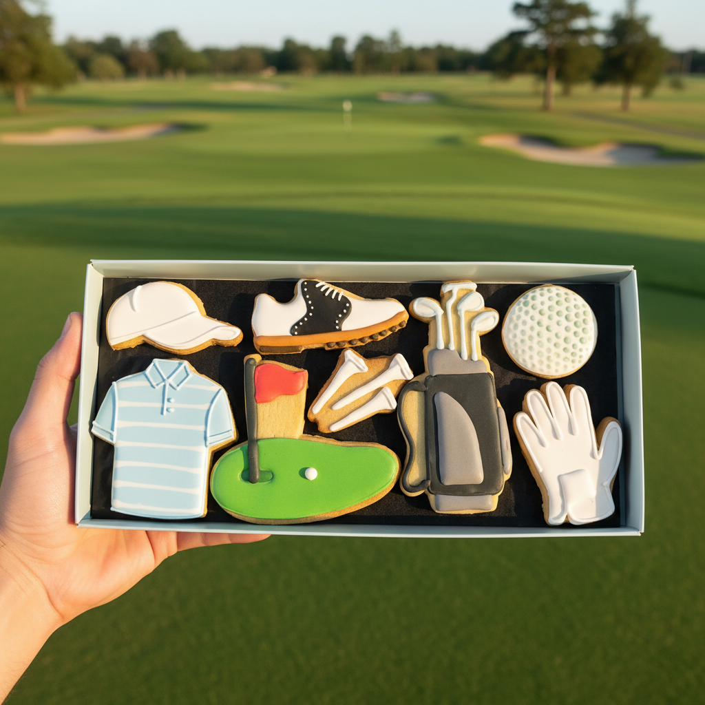 Includes biscuits in the shape of a golf ball, a polo shirt, golf clubs and more!
