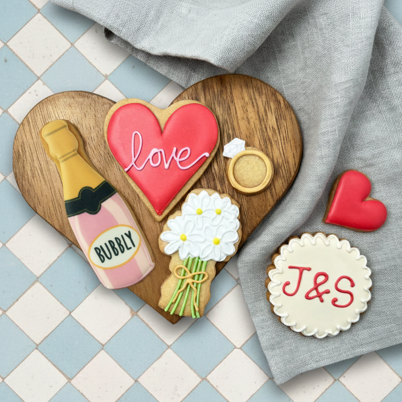 💍Features biscuits in the shapes of flowers, pink bubbly, a ring and more!