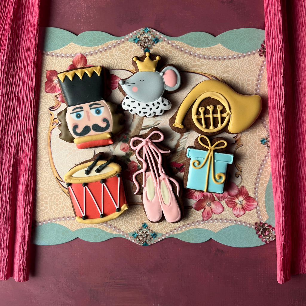 🐭 Features biscuits in the shapes of ballet shoes, Nutcracker, Mouse King, present, drum and a french horn.